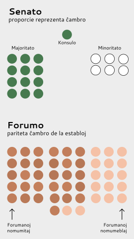 - La Parlamento konsistas el du branĉoj: Forumo kaj Senato.